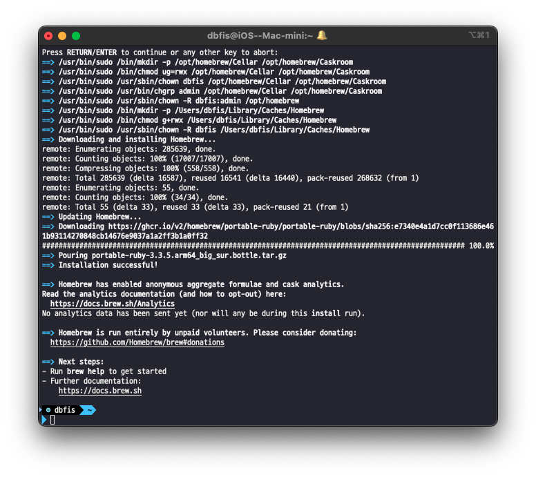 Homebrew 설치 방법은 다음과 같다. 터미널에서 아래 명령어를 입력하고 실행한다.