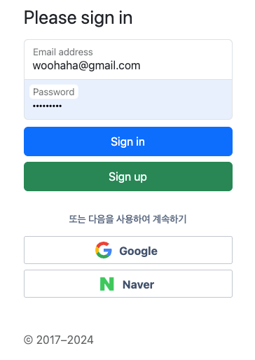 네이버 로그인 버튼은 구글 로그인 버튼의 스타일을 최대한 따랐고, 네이버 로고 이미지는 내가 직접 작업해서 /src/main/resources/static/images 경로에 넣어두었다.