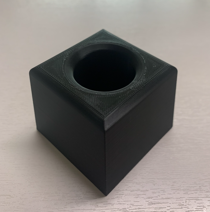 사실 별거 없다. 비스듬히 위가 좁아지는 정육면체 만들고 그 안에 돌돌이 손잡이 지름이 들어갈만큼 구멍을 팠다.